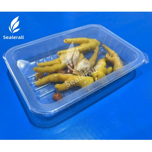 13. The size of the sealing film is 2-3mm larger than the edge of the container (referring to the roll film sealing), and the handle position can be designed, the sealing is tight and the appearance is beautiful.